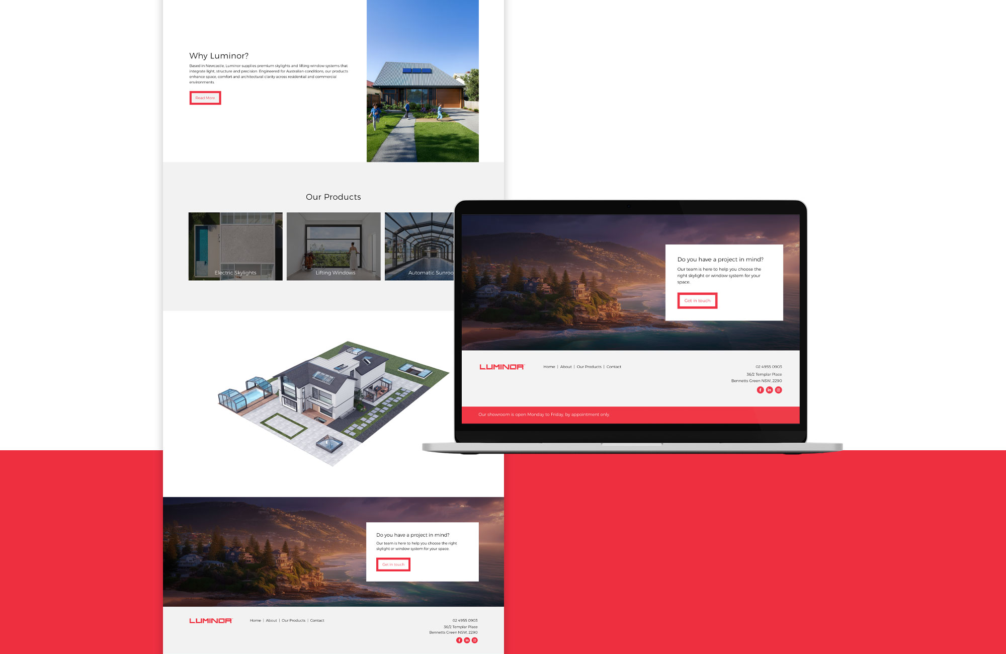 From residential applications to commercial projects, Luminor partners with architects, builders and designers to bring each project vision to life with precision. The brand system scales across all touchpoints—from technical documentation to showroom signage—maintaining consistency while adapting to context.
